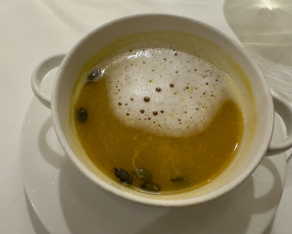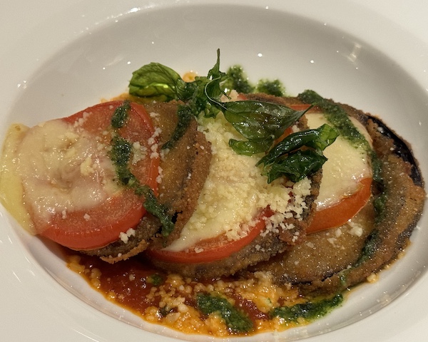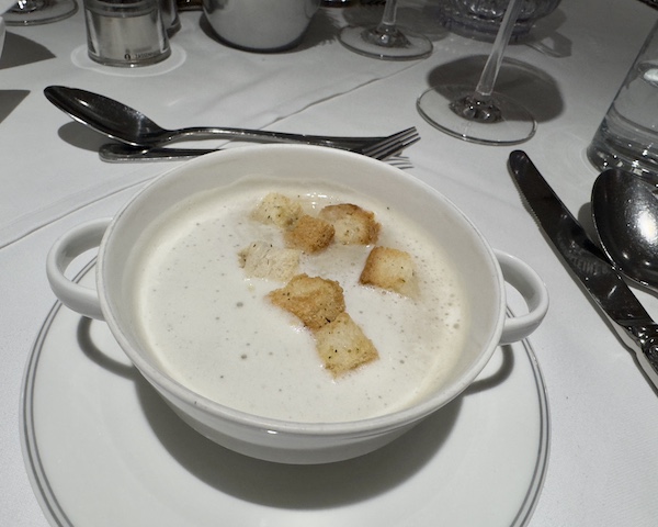 Each evening, dinner offered a plated appetizer for everyone, a choice of two soups, and a selection of three entrées daily, each featuring a meat, a seafood, and a vegetarian option.